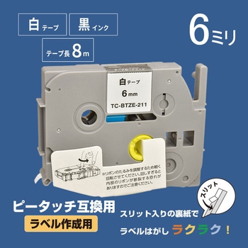 テープカートリッジ 6mm ピータッチ互換 白地/黒文字 8m
