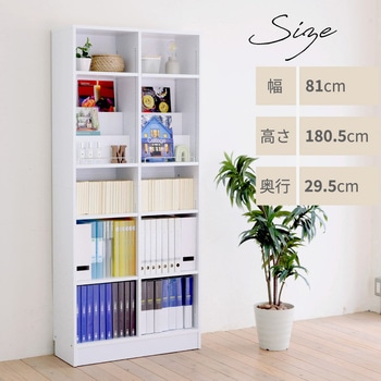 幅81cm・奥行29.5cmで豊富な収納力を誇る、大容量の深型オープン本棚。お気に入りを飾れる「飾り棚」2枚と通常の可動棚6枚の計8枚の棚を装備。全ての棚は1cmピッチで高さ調節でき、A4ファイルから専門誌まで幅広く対応。深さを活かせばコミック等の前後2列収納も可能で、壁一面が頼れる書庫になります。