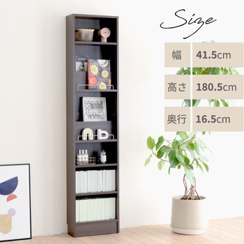 幅41.5cm、奥行16.5cmの薄型設計で圧迫感なく置けるスリム本棚です。