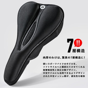 硬いスポーツサドルの痛みを軽減し、長時間のライドも快適にする肉厚クッションサドルカバー。約3.2cmのボリュームあるクッションと7層構造により、衝撃をしっかり吸収し体圧を分散。中空デザインで通気性も高く、汗をかいても蒸れにくい快適仕様です。