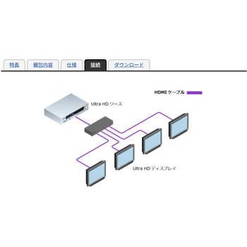 1系統のHDMI信号を最大4台の表示機器へ同時出力が可能。