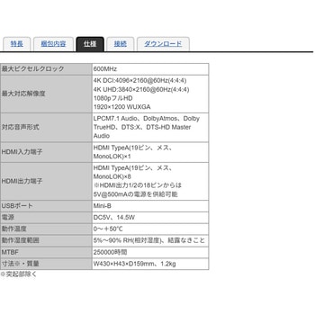 1系統のHDMI信号を最大8台の表示機器へ同時出力が可能。