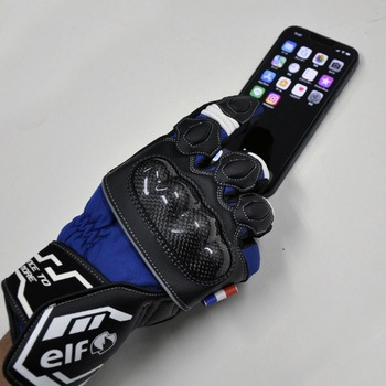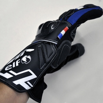 スムーズな動きを実現するフローティング式カーボンナックルプロテクターを装備。さらに中綿、防水フィルム、スマホタッチ機能も備えたエルフ定番のスポーツライディングウインターグローブ。