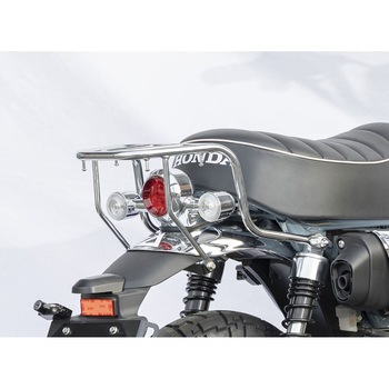 販売を終了していたリアキャリアをリニューアルして販売!シートバッグなどを積載した際に固定しにくいベルトがずれない様にする滑り止めバーを設置。実用性がアップしました。車体イメージを損なわないデザインとメッキ仕上げが車体にマッチします。スチール製 メッキ仕上げ