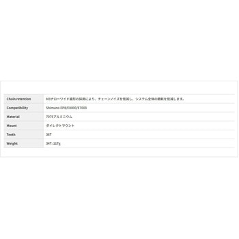 ダイレクトマウントe*specチェーンリングは、新しいM3ナローワイド歯型を採用し、チェーンリテンションを犠牲にすることなく軽量化を実現しています。