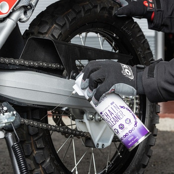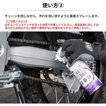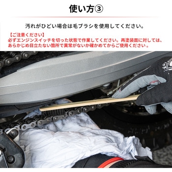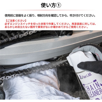 汚れたチェーンルブをしっかり落とす、チェーン専用クリーナー。洗浄剤と防錆剤を配合し、汚れを落としながらも保護効果が得られる。ゴムや塗装面を傷めないのでシールチェーンにも使用可能。定期的なチェーンメンテナンスにより、エンジンパワーを後輪に伝える際のパワーロスを軽減する。Flat-lab.チェーンルブとの併用がおすすめ。