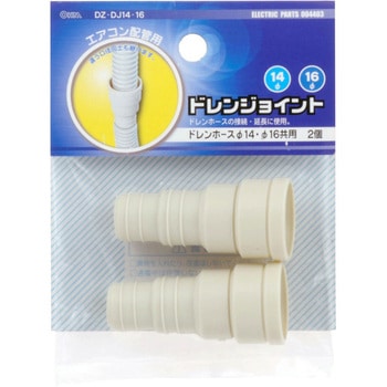 ドレンホースの接続・延長に使用します。ドレンホースΦ14・Φ16共用。違う径どうしもつなげます。水平部での接続は水漏れの原因になります。接続部が垂直になるようにお使いください。口径の太い方が上になります。差し込みの深さは2段階になっています。確実に奥まで差し込んでください。きつい時は回しながら押し込んでください。接続部にはビニールテープを巻いてしっかり固定してください。Φ14とΦ16の口径変換アダプターとしてもお使いになれます。
