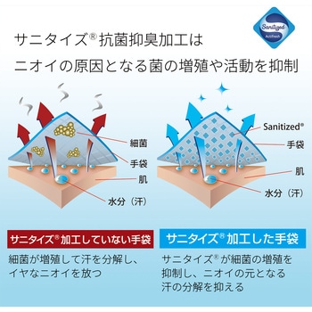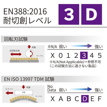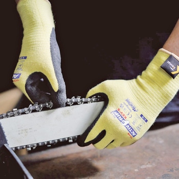 アラミド繊維と金属繊維の混合糸を採用しており、耐切創性に優れています。特殊すべり止め「マイクロフィニッシュ加工」を施しているため、油に濡れても高いグリップ力を発揮します。欧州規格EN407:2020コンタクトヒートに適合しており、250℃までの接触熱に対し、15秒までの耐熱性があります。長めの手首部分が作業中に発生する汚れや摩擦、切創によるリスクから広範囲にかけて保護します。ニトリルゴムをコーティングしているため、油や突き刺し・引っ掻きに強く、耐摩耗性に優れています。