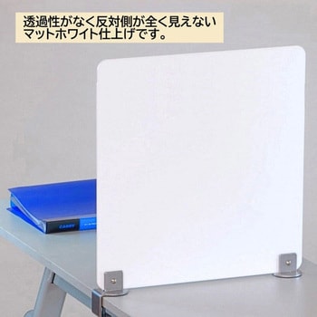 半透明のアクリル製サイドパネルです。圧迫感を感じさせないクリアフロスト仕上げ。取り付け金具の組み方で机と机の間に挟み込む使用も可能です。