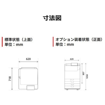 付属品トナーカートリッジ080(C/M/Y)スターター×各1本、トナーカートリッジ080(K)、ドラムユニット080、回収トナーボックスWT-202、GSシート、カスタマープレミアサイトのご案内、保証登録のお願い、セットアップガイド、安全にお使いいただくために、コールセンターシール、電源コード本体質量(kg)(約)91(カートリッジを除く)用紙【手差し】薄紙、普通紙、再生紙、環境紙、色紙、厚紙、コート紙、第二原図、ボンド紙、OHPフィルム、透明フィルム、ラベル紙、パンチ済み紙、レターヘッド、インデックス紙、封筒、はがき、和紙 坪量:52~300g/m2【標準カセット上段】薄紙、普通紙、再生紙、環境紙、色紙、厚紙、ボンド紙、OHPフィルム、パンチ済み紙、レターヘッド、封筒、はがき 坪量:52-256g/m2【標準カセット下段】薄紙、普通紙、再生紙、環境紙、色紙、厚紙、ボンド紙、OHPフィルム、パンチ済み紙、レターヘッド、インデックス紙、封筒、はがき 坪量:52-300g/m2メモリー搭載:2GB本体寸法(幅W×奥行D×高さH)(mm)(約)620×717×807解像度最大プリント:4800×2400dpi動作モードLIPS V(LX/Ⅳ/Ⅲ/Ⅱ+)(ページ記述言語)プリント方式電子写真方式給紙容量【標準】1400枚、【オプション給紙】5850、【最大給紙枚数】7250(64g/m2)使用可能用紙サイズ(手差しトレイ)A3、A4、A5、A6、B4、B5、B6、リーガル、レター、レジャー、エグゼクティブ、封筒(洋形長3号、長形3号、角形2号、長形4号、長形40号)、はがき、往復はがき、4面はがき、ユーザー設定サイズ(98.0×139.7mm~320.0×457.2mm)、長尺(98.0×457.3~320.0×1300.0mm)、(給紙カセット)【上段】A4、A5、A6、B5、レター、エグゼクティブ、封筒(洋形長3号、長形3号)、はがき、往復はがき、4面はがき、ユーザー設定サイズ(98.0×148.0mm~297.0×215.9mm)【下段】A3、A4、A5、A6、B4、B5、リーガル、レター、レジャー、エグゼクティブ、封筒(洋形長3号、長形3号、角形2号)、はがき、往復はがき、4面はがき、ユーザー設定サイズ(98.0×148.0mm~304.8×457.2mm)インターフェイス(USB/ネットワーク/拡張スロット)USB2.0Hi-Speed×1、USB2.0 Host×2、1000Base-T/100Base-TX/10Base-T(IEEE 802.3準拠)、IEEE 802.11b/g/n/ac/ax※無線LAN対応は有償オプションRoHS指令(10物質対応)対応グリーン購入法適合内容量1台