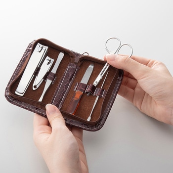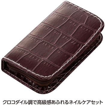 クロコダイル調で高級感あふれるネイルケアセット!ネイルのお手入れはもちろん、毛抜きやハサミなども揃った、身だしなみ全般に活躍するセットです。ステンレスとカーボンスチール製のツールは耐久性に優れており、長く愛用できる品質を備えたネイルケアセットです。外出先や旅行用としても便利です。