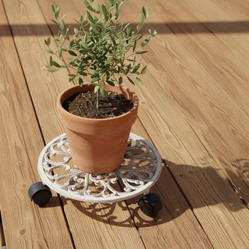 アンティーク調の模様と、エイジング塗装が美しい、英国風の花台です。置いておくだけでも存在感があり、お気に入りのプランターをさらに引き立てます。