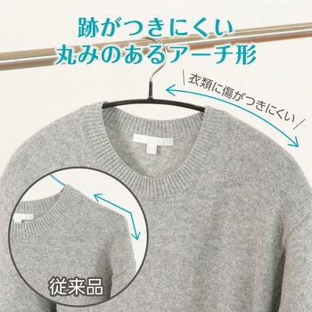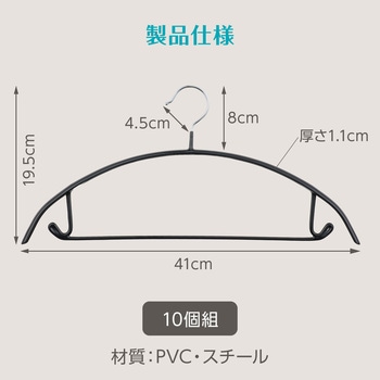 滑らない、崩れない!型崩れ知らずのアーチ型ハンガー!PVCコーティングが施されたアーチ型のハンガーです。PVCコーティングの滑り止め効果によって、衣類が落ちる心配なく使用できます。丸みのあるアーチ型設計で肩のラインを崩さず、美しいシルエットをキープできます。耐久性のあるスチール製で、重いコートやジャケットも安心して掛けられます(耐荷重:約3kg)。フック付きでキャミソールや小物なども掛けられる多用途デザインです。乾湿両用で濡れた衣類も掛けられるため、洗濯物から日常使いまで幅広く活躍します。