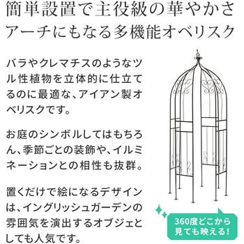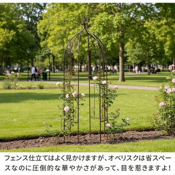 バラやクレマチスのようなツル性植物を立体的に仕立てるのに最適な、アイアン製オベリスク。