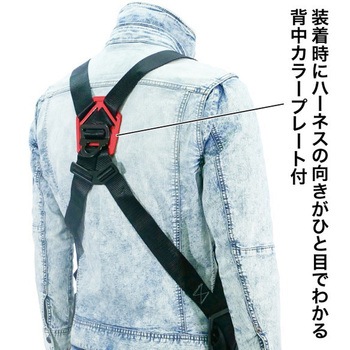 装着時にハーネスの向きがひと目でわかる背中カラープレート付