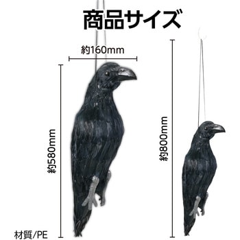 吊るすだけで害鳥被害を減らす!実感の”寄せつけない”存在感吊るすだけで害鳥被害を軽減できる、本物そっくりの吊り下げカラスです。ゴミ置き場、畑、ベランダ、庭、店頭、駐車場など、さまざまな場所で使用可能。上下2箇所に取り付け紐があるため、用途に応じて上向き・下向きに調整できます。下向きに吊るせばカラス対策に、上向きに吊るせばハトやスズメ、ムクドリなどの対策にも効果を発揮します。