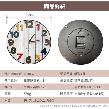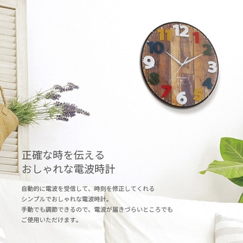 ポップなデザインでお部屋のアクセントになる壁掛け電波時計です。