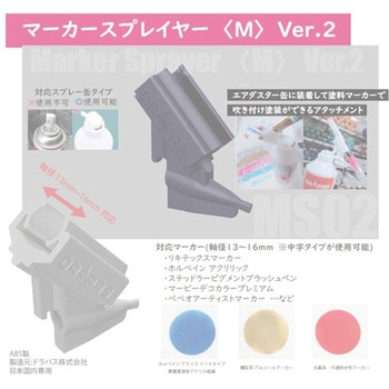 【取り付け方】1ペンホルダー部とノズル部をスライド部分から分割します。2ノズル部をエアダスターのノズルに奥までキッチリと差し込みます。3ペンホルダー部をスライド部に差し込み、ペンホルダー部下部のカギ部分をエアダスターの縁に引っ掛けます。これで装着完了! 【使用方法と塗装のコツ】1ペンをよく振ります。カチャカチャと音が鳴るまで必ず振ってください!2ペン先を試しに紙に押し付けてインクだまりを作ります。3ペンをスプレイヤーのホルダー部にセットします。ノズル部のふきだし口が、ペンの根元に当たるように調整します。4作品に吹きつける前に必ず試し吹きをして余分なインクを飛ばします。5その後は本体を動かしながら短くシュ!シュ!薄く重ね塗りをしていきます。長くシューと吹きつけるとムラが発生します。御法度です!