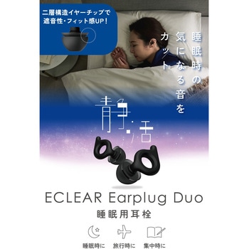 朝までずっと、静かな眠りを。高い遮音性能で快眠環境をサポートする耳栓”エクリア イヤープラグ デュオ”です。二層構造のシリコンチップとd字形状が耳穴にぴったりフィットして睡眠中も外れにくく、音をしっかり遮断。コンパクトなケース付きで、保管や旅行での持ち運びに便利です。