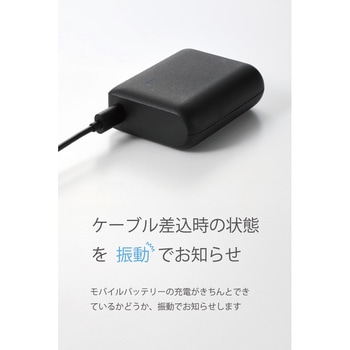 モバイルバッテリーの充電がきちんとできているかどうか、振動でお知らせします。充電開始時はもちろん、ケーブルを挿したのに充電できていない場合も、細かな振動で状況を通知します。