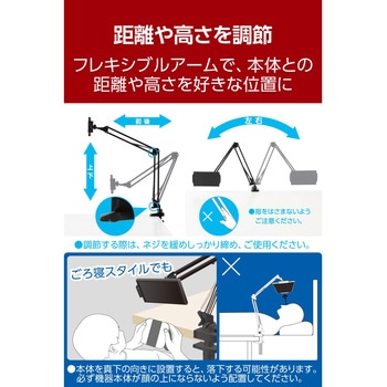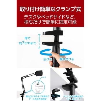 好きな姿勢でプレイできる!デスクやベッドサイドに簡単に取り付けられる、NINTENDO SWITCH(TM)シリーズ対応アーム型スタンドです。長いフレキシブルアームとボールジョイントで機器本体を好みの位置に調整して、ハンズフリーでプレイできます。