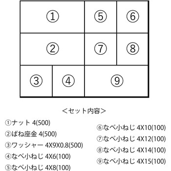 なべ小ねじ・ナット・ワッシャー・ばね座金のセットです。