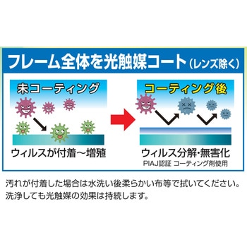 〇フレーム全体を光触媒コーティング:抗菌、抗ウイルス、防汚効果〇EN規格の対傷性(K)、防曇性(N)に合格した高性能レンズ〇軟質エラストマーガスケット付き〇UVカット99.9%〇ANSI規格品