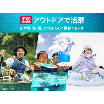 水辺でもアクティブに撮れる安心の防水性能。IPX8相当の防水性能、水深3mで約一時間使用できる防水設計なので、海や川、雪山などでも撮りたい瞬間をそのまま記録。アウトドアでも仕事の現場でも天候や環境に左右されない防水カメラです。