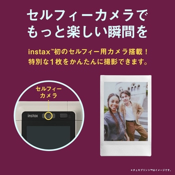 チェキシリーズ初のセルフィーカメラを搭載し、自撮りがより自然に、簡単に楽しめるよう進化しました。新機能「Layered Photo Mode」では、セルフィーと背景画像を重ねて1枚のチェキプリントにでき、思い出をより豊かに表現できます。