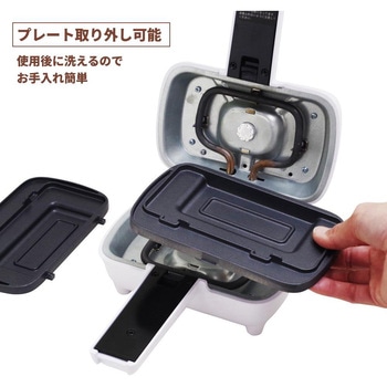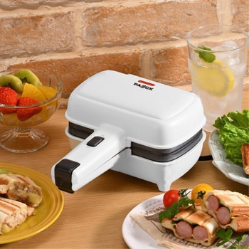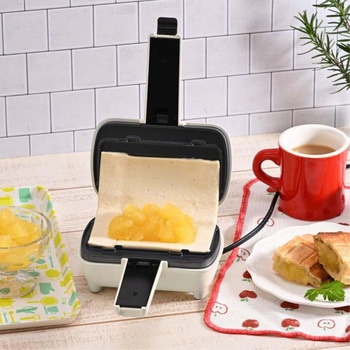 プレートは着脱式で簡単に取り外せるので、使用後は丸洗い可能で清潔に使えます。フッ素樹脂塗装により食材がこびりつきにくく、手際よく調理ができます。食パン1枚をそのまま挟めて具材を入れて折りたたむお手軽スタイル。縦置き可能で収納しやすいコンパクトサイズ!一人暮らしや小さなキッチンにもぴったりです。5~8枚切りの食パンをお使いいただけます。簡単レシピ付き。1台でメニューの幅が広がります。