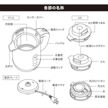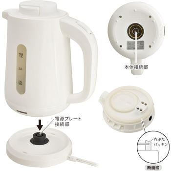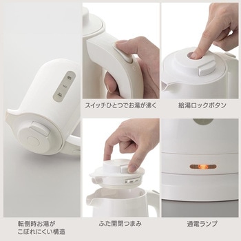 電気ケトル 1.0L 転倒湯もれ防止機構付 ホワイト