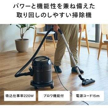 長さ15mの電源コードを備えており、事業所や商業スペースでも電源の差し替えを減らし、快適に使用できます。また、ブロワー機能を搭載しているため、すき間に入ったゴミを簡単に吹き飛ばすことが可能です。お店用としてのパワーと機能性を兼ね備えた、取り扱いやすい掃除機です。