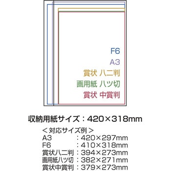 A3・F6サイズの他に、画用紙八ツ切判、賞状(中賞・ハニ判)なども収納できます。