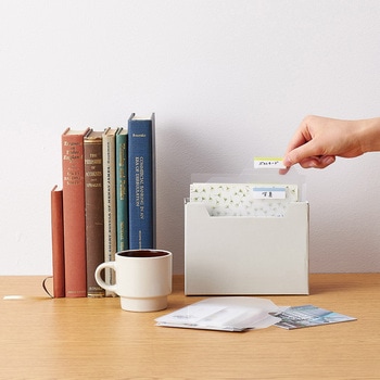 セット内容ホルダー5枚・ボックス1個・インデックスステッカー1枚材質ホルダー/ポリプロピレン・厚さ0.2mm ボックス/紙質量(g)ホルダー1枚につき8g・ボックス50g収納枚数ホルダー1枚につきA6コピー用紙約100枚( 64gm2程度)寸法(縦×横)(mm)インデックス部分:80×23寸法(縦×横×厚さ)(mm)(ホルダー)159×143×12、(ボックス):約126×170×72内容量1組
