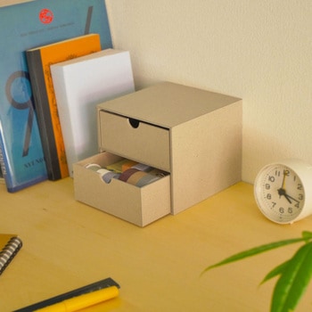 デスクやテーブルにおいても邪魔にならないコンパクトサイズ展開。古紙パルプ配合率100%の再生紙を使用しています。紙の温かみを感じられるクラフトとモノトーンで落ち着いた印象のライトグレーの2色展開でインテリアにも馴染みます。Vカット加工により、エッジのある洗練された紙製収納シリーズです。