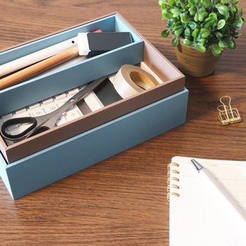 文具や裁縫道具、コスメなどの散らかりがちな小道具を収納できる、紙製のお道具箱です。
