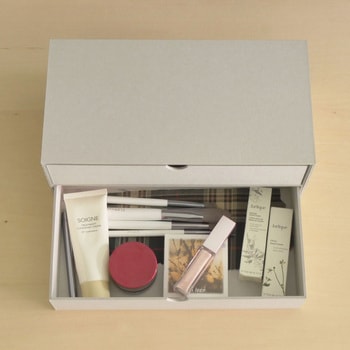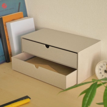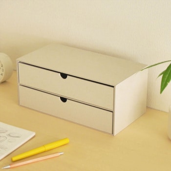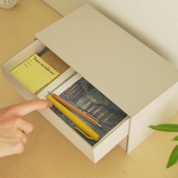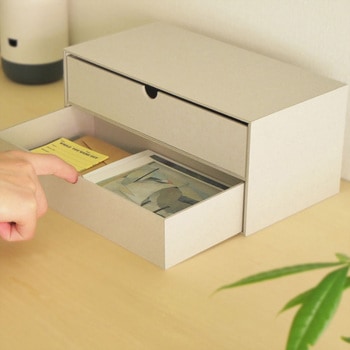 デスクやテーブルにおいても邪魔にならないコンパクトサイズ展開。古紙パルプ配合率100%の再生紙を使用しています。紙の温かみを感じられるクラフトとモノトーンで落ち着いた印象のライトグレーの2色展開でインテリアにも馴染みます。Vカット加工により、エッジのある洗練された紙製収納シリーズです。