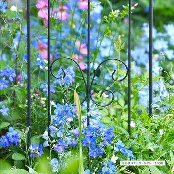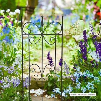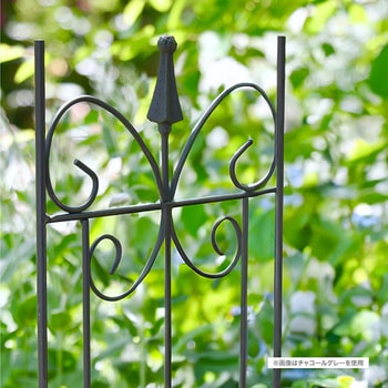 様々な用途に使用出来る小型のガーデントレリス。狭い庭でも花を立体的に仕立てて華やかな空間づくりが叶います。花がない冬の間も、エレガントなパピヨン(蝶)模様が庭を美しく演出してくれます。フィニアルと呼ばれる矢尻型の装飾は、クラシカルな雰囲気を演出しつつ視覚による防犯の役目も果たします。