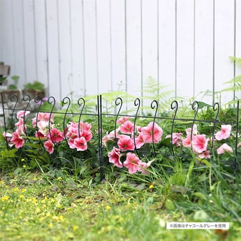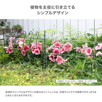 複数を連結して用いることで、花壇や植栽帯の囲いとして機能するミニフェンス。花壇の縁取りや植栽帯の区切りにちょうどよく、プランターの背景としても使いやすい大きさです。デザイン性が高く、庭に上品な雰囲気を添えながら、植物を整える実用性も兼ね備えています。片側に連結用のリングが付いており、簡易に接続ができます。