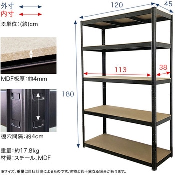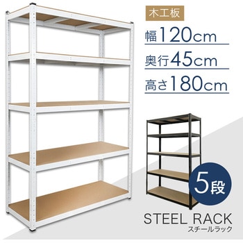 頑丈なスチール枠にシンプルで上部なMDFボードをはめこんだ、様々な場所で使える5段ラックです。