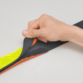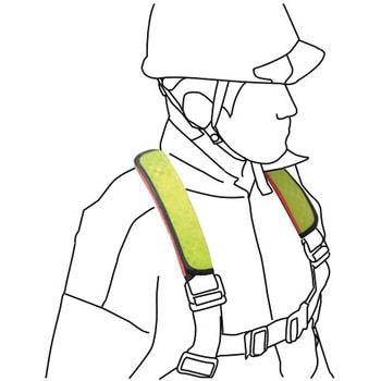 フルハーネス専用の反射ショルダーパッド。表面(黄色)には幅50mmの高輝度プリズム反射材使用。裏面(赤色)はソフトで通気性のいいメッシュ生地。長さは全長250mmのロングサイズ。面ファスナーで簡単取付でしっかり固定。