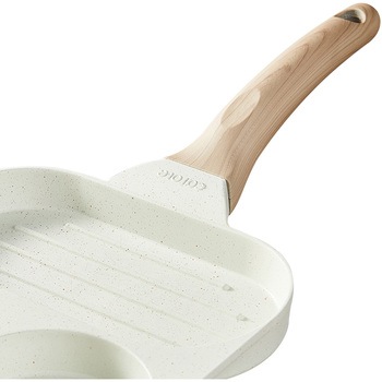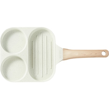 毎日使いたくなる便利な仕切りパン。丈夫なアルミダイキャスト。一体成型で洗いやすい。軽量仕様。仕切りタイプで3食同時に調理できる。