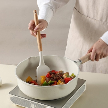 本体/アルミニウム合金、はり底/ステンレス鋼(厚さ0.5mm)、ハンドル/フェノール樹脂(木目調シリコーン塗装)