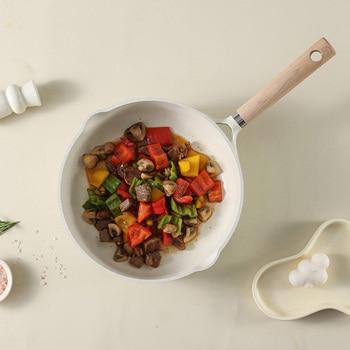 毎日使いたくなるデザインフライパンシリーズ。丈夫なアルミダイキャスト。一体成型で洗いやすい。超深型仕様。握りやすいハンドル。