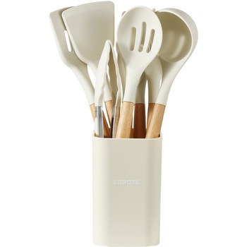本体/シリコーン(耐熱温度220℃)、中芯/ナイロン(耐熱温度140℃)、持ち手/天然木