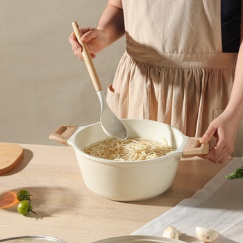 本体/シリコーン(耐熱温度220℃)、中芯/ナイロン(耐熱温度140℃)、持ち手/天然木