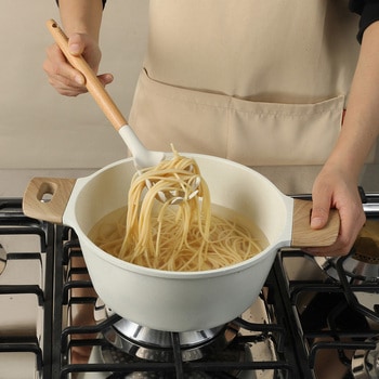本体/シリコーン(耐熱温度220℃)、中芯/ナイロン(耐熱温度140℃)、持ち手/天然木