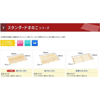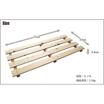 自然豊かな高知県で育った良質の「ひのき間伐材」で作られた国産桧すのこ。木材の伐採から組立・梱包に至るまでを自社で行う「一環生産」システムを採用し、国産桧材にこだわり、ひのきが大好きなお客様に自信を持ってオススメできる品質ピカイチ! の桧スノコ。香りが良く、調湿性・抗菌性に優れた国産桧のスノコは、お風呂や押入れ、納戸、物置、ベランダ、玄関など様々な場所で大活躍!DIY素材として自作棚などのパーツとしても。より耐久性・信頼性にすぐれた4本足タイプ