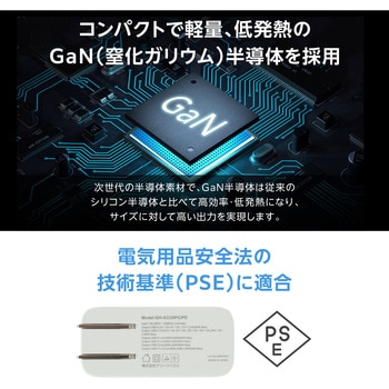 次世代半導体素材「GaN(窒化ガリウム)」を採用しており、従来の充電器よりも高効率・低発熱・小型化を実現。手のひらサイズのコンパクトボディで、持ち運びにも便利です。