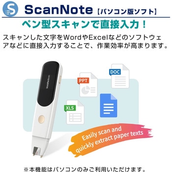 Wi-Fi接続により、PC・スマホ・タブレットと連携可能。スキャンした文字はWordやExcelなどに直接入力でき、クラウド共有も簡単。